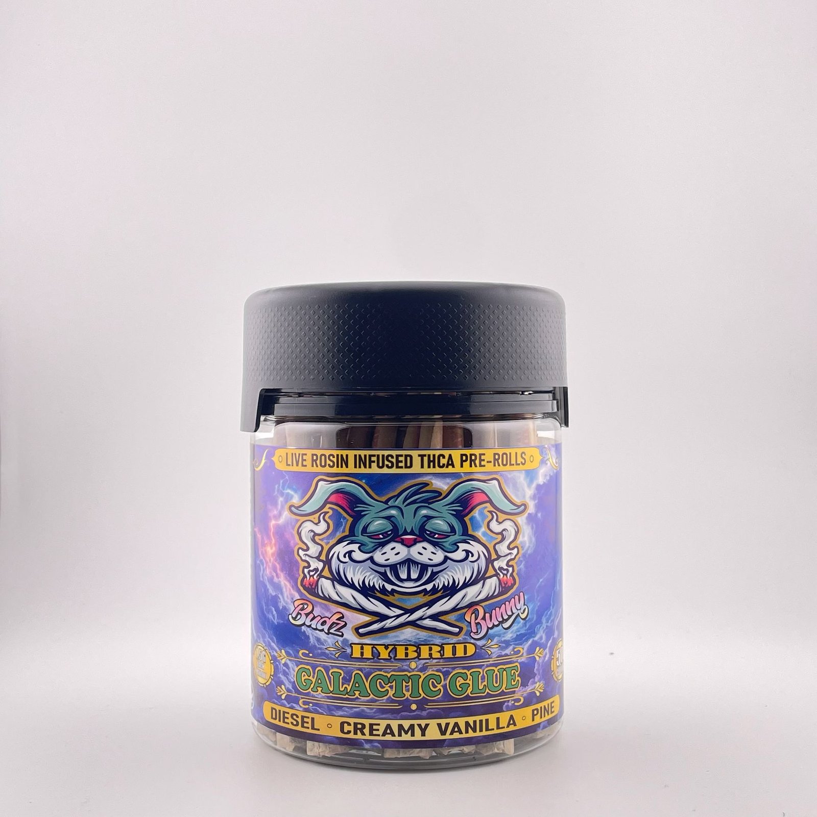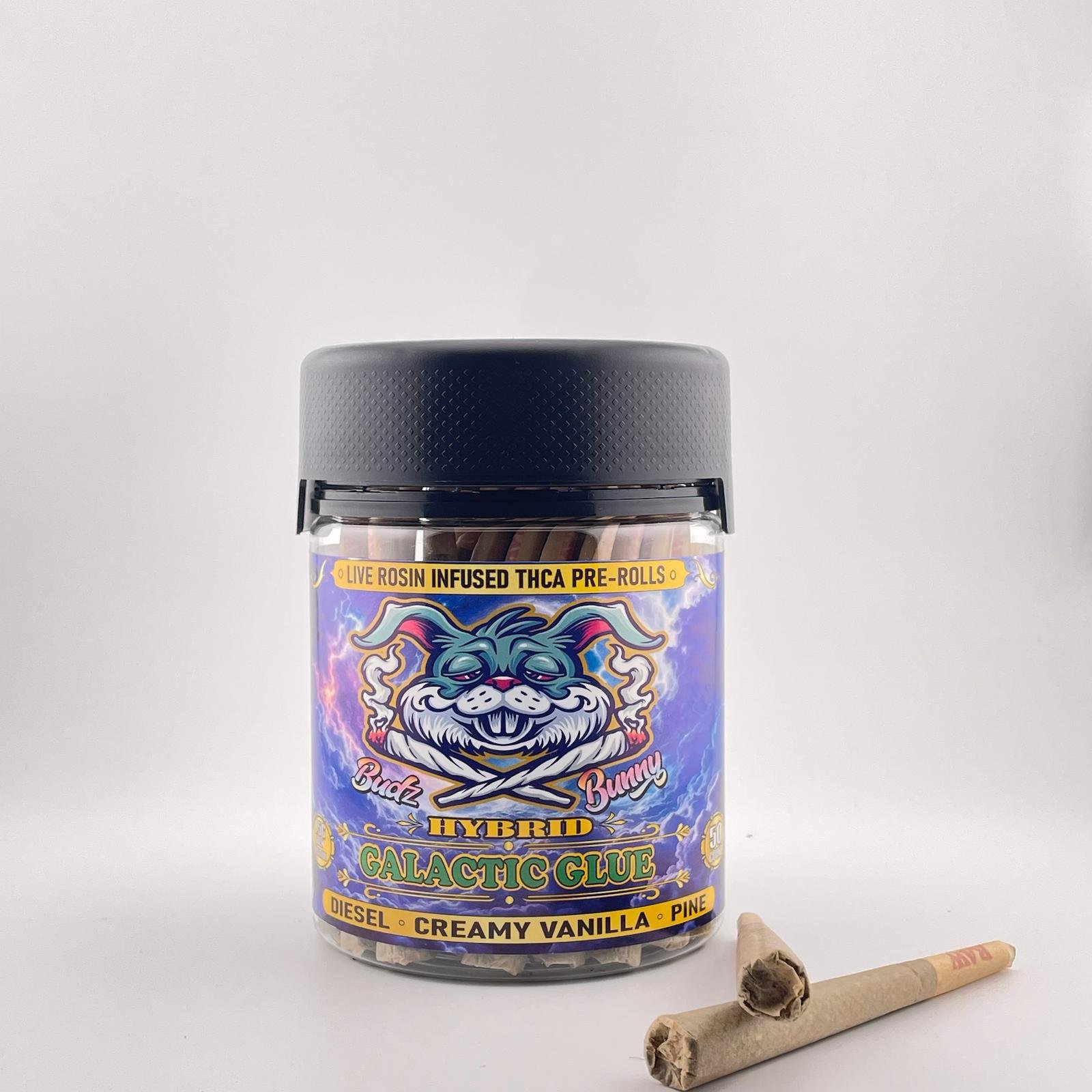Packaged in a 50-count jar with untubed rolls, this collection is compact and convenient, making it easy to carry or share while maintaining quality. Each roll contains 1.5 grams of premium flower, ensuring a consistent and satisfying session. Galactic Glue Pre Rolls are crafted for those seeking a flavorful, portable, and balanced Hybrid experience.