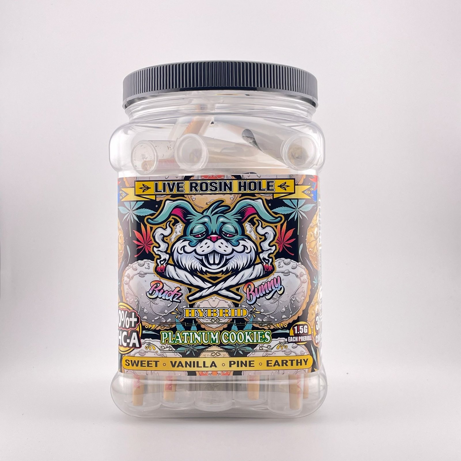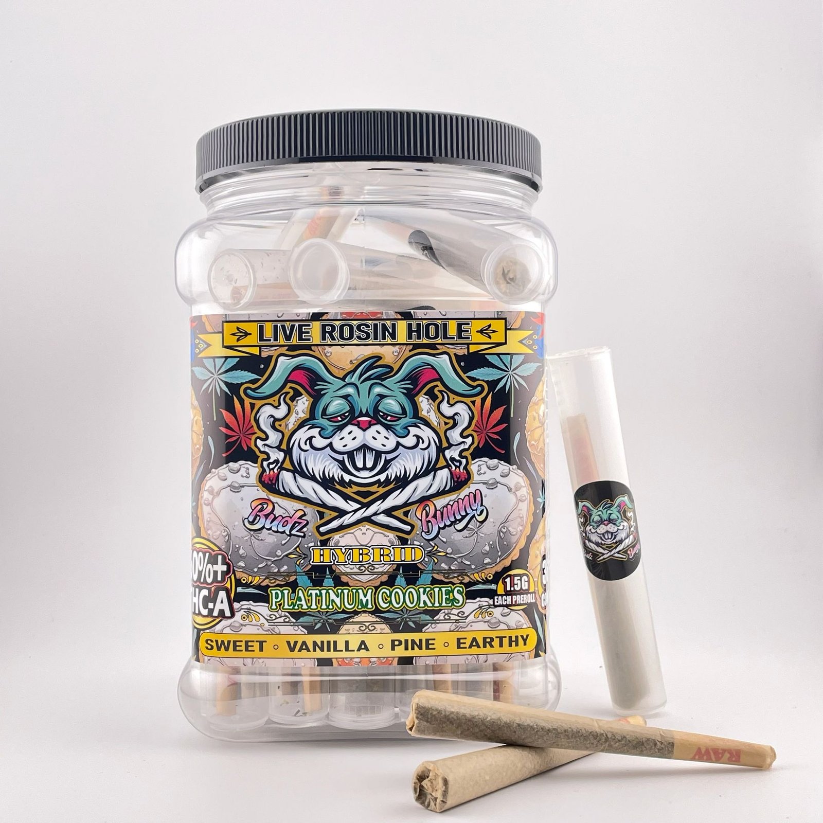Presented in a large jar with every roll individually tubed, freshness and quality are preserved to the highest standard. With thirty-six rolls at 1.5 grams each, this collection combines premium craftsmanship, long-lasting supply, and a refined smoking experience — ideal for those who seek consistency and indulgence in every session.