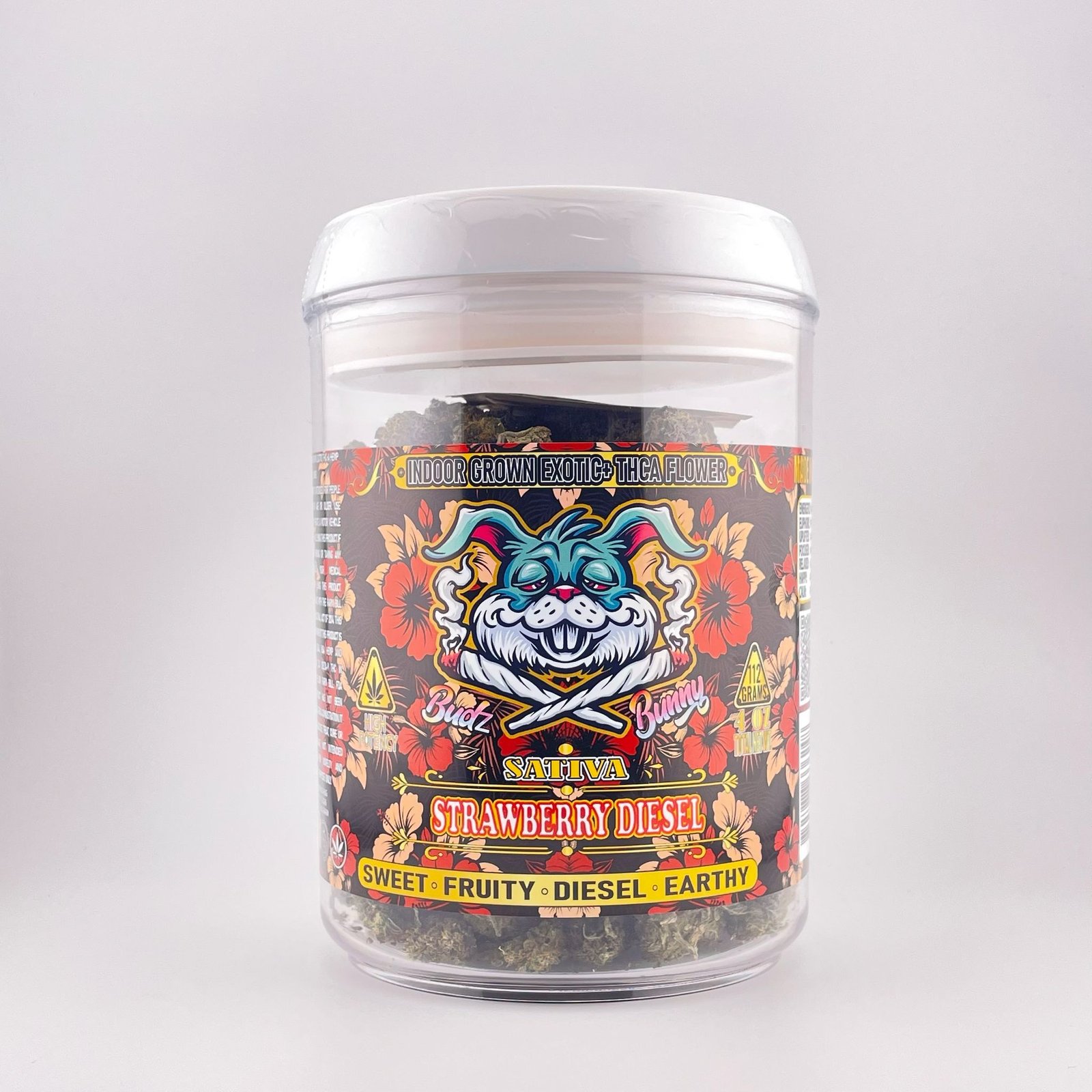 Strawberry Diesel is an Exotic+ Sativa THCA flower known for its energetic kick and bold flavor. Its vibrant, trichome-coated buds showcase a bright green base with hints of fiery orange hairs, giving it a striking appearance that matches its lively character. The aroma combines sweet strawberry notes with sharp diesel undertones, creating a profile that is both fruity and pungent. Offered in a 112g / 4oz bulk pack, it’s perfect for those who seek high-quality Sativa strains in larger quantities.